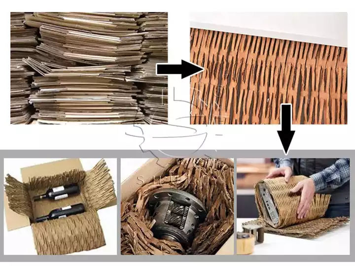Unsere Kartonzerkleinerungsmaschine kann Abfallkarton in Streifen oder Netz schneiden. Die erweiterte Ausgabe bietet eine gute Polsterleistung, ideal für umweltfreundliche Verpackungsfüllung.