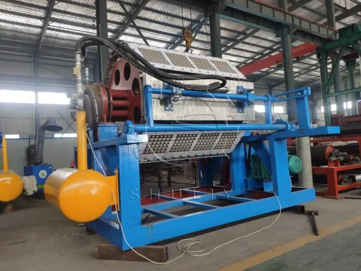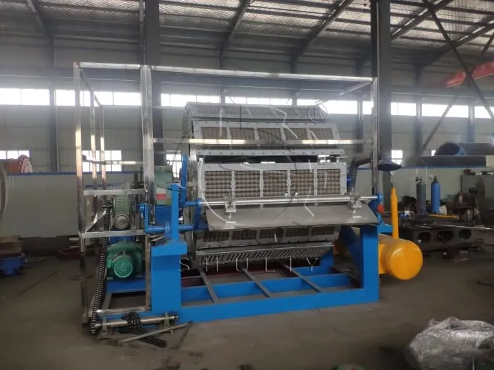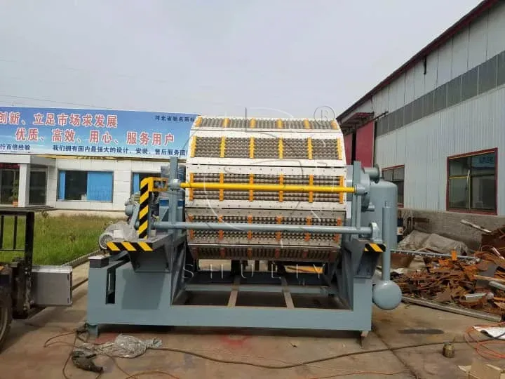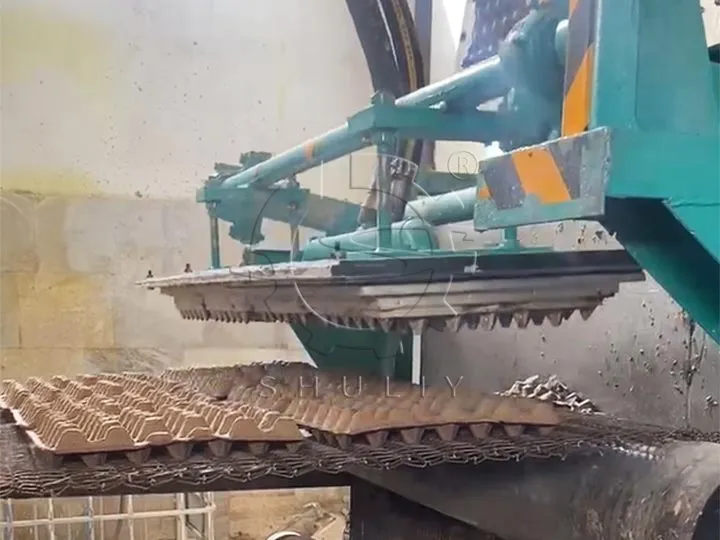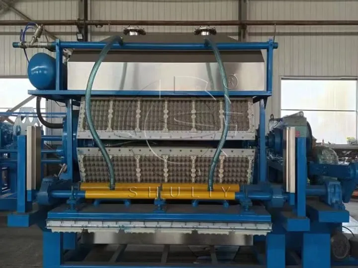- Pulp Molding: The pulp is vacuum-formed on metal molds using the egg tray making machine.