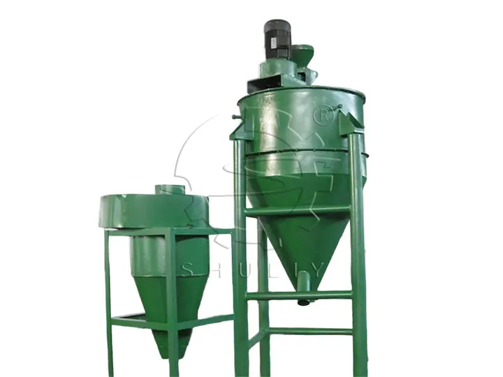 Remove contaminantes de fibras finas do pó de borracha usando separação por fluxo de ar, garantindo alta pureza do produto.