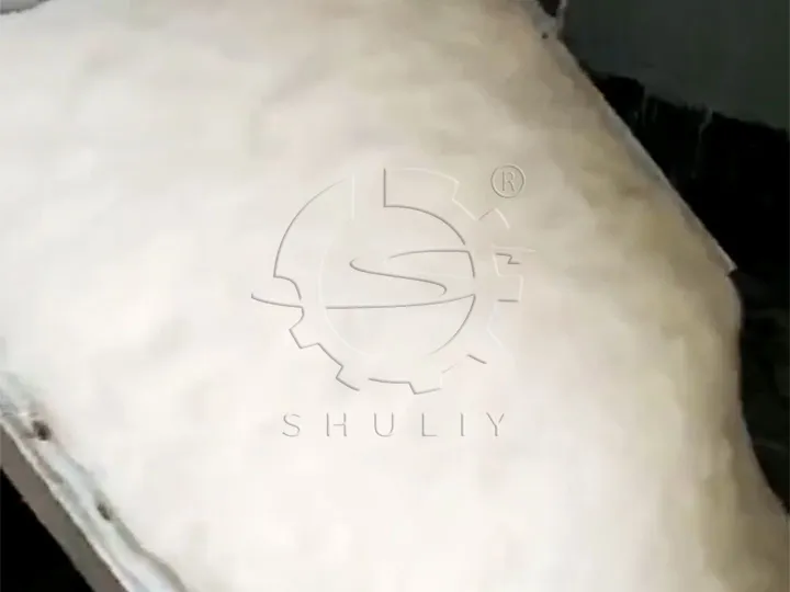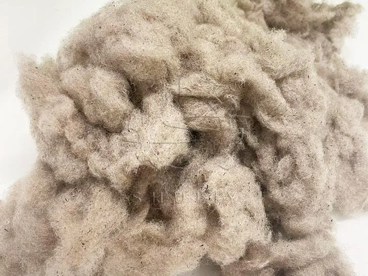 Efter flera öppningssteg blir fibrerna mjuka och rena, redo för vidare bearbetning, fyllning eller spinning.