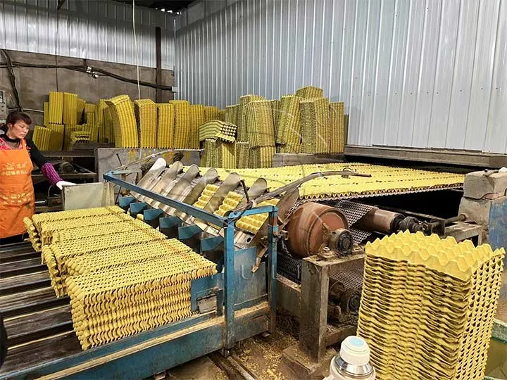 Toàn bộ nhà máy sản xuất khay trứng có thể được điều chỉnh theo yêu cầu của khách hàng, cho dù là hoạt động thủ công hay sản xuất hoàn toàn tự động.