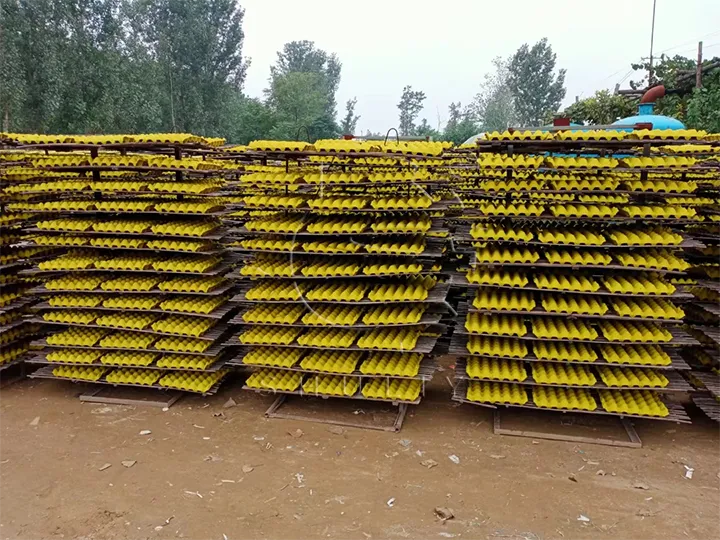 Sản lượng của một nhà máy sản xuất khay trứng thường dao động từ 1.000 đến 8.000 chiếc mỗi giờ, chủ yếu phụ thuộc vào cấu trúc của máy tạo hình (chẳng hạn như 1×4, 4×4, 4×8, v.v.).